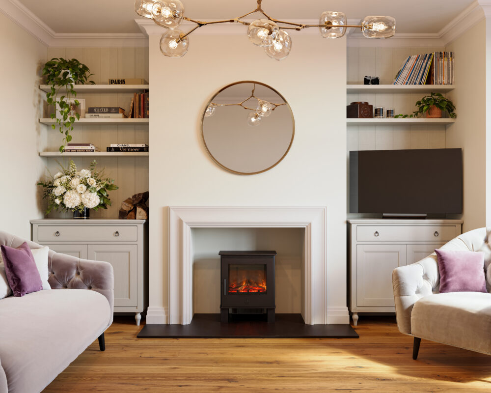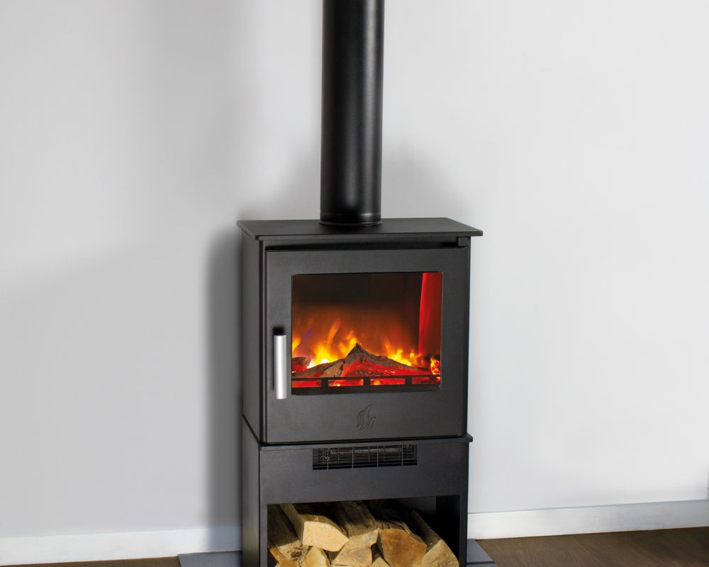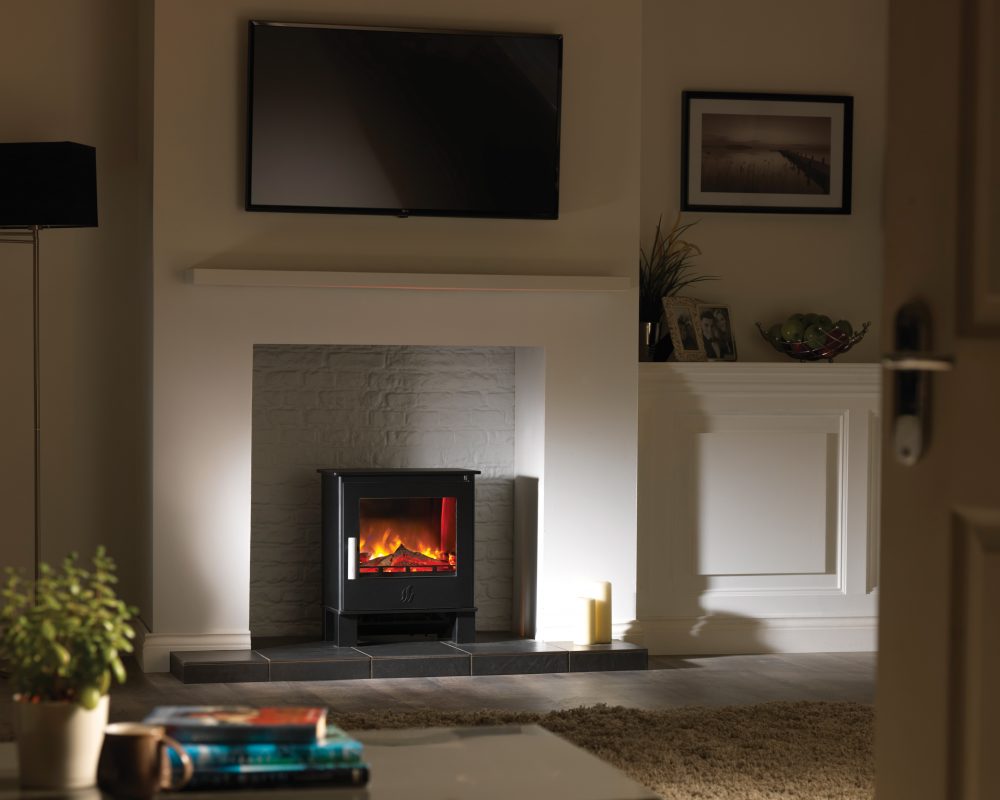Constructed of high quality, lightweight steel and finished in durable black powder-coat finish, the Malvern Electric offers a choice of 1 and 2Kw heat output along with a no heat setting where you can just appreciate the relaxing flame effect – ideal for warmer evenings when just the atmosphere is flickering flames would be welcome but when heat isn’t required.