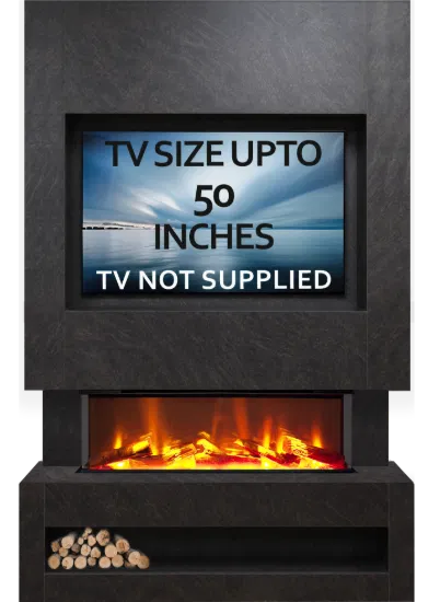 Our pre-built media wall suite is crafted in the UK using premium-grade Egger board finished with Cupria Slate, elegant warm tones of black and copper, its light texture feels natural and looks sophisticated. The media wall suite comes in three easy-to-assemble parts, making installation simple. Our design incorporates a log storage compartment, and a TV recessed compartment with a cut-out rear panel to flush-mount your TV.