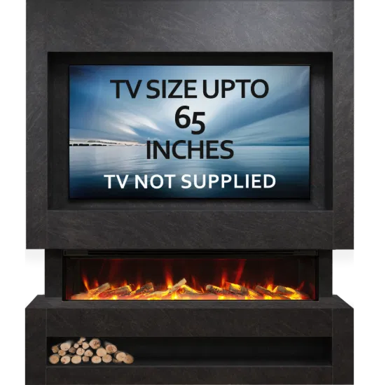Our pre-built media wall suite is crafted in the UK using premium-grade Egger board finished with Cupria Slate, elegant warm tones of black and copper, its light texture feels natural and looks sophisticated. The media wall suite comes in three easy-to-assemble parts, making installation simple. Our design incorporates a log storage compartment, and a TV recessed compartment with a cut-out rear panel to flush-mount your TV.