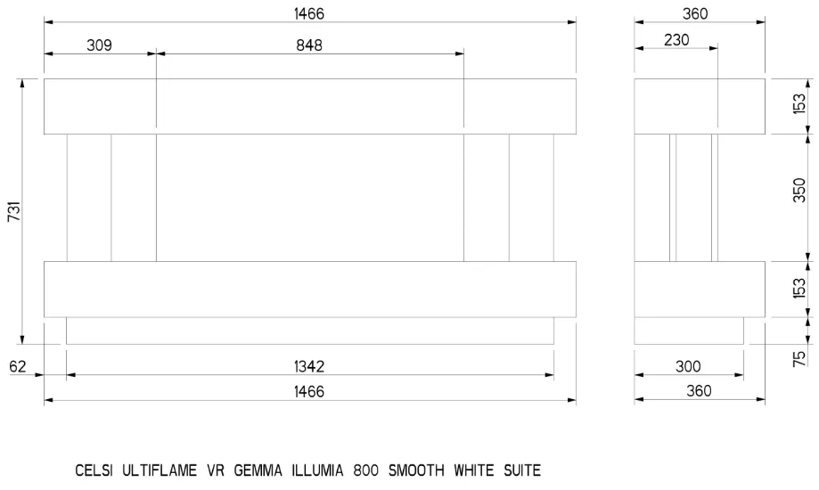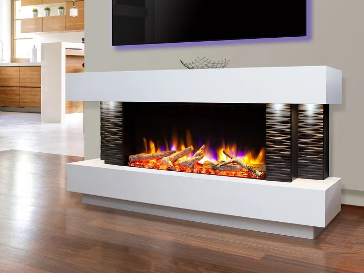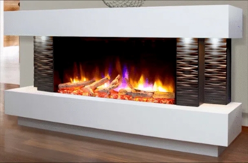 The Ultiflame VR Toronto 800 Illumia Suite is tastefully designed and manufactured using Premier quality boards, painted to a smooth finish. This suite features integrated dimmable warm LED downlights, and at the heart is the 33-inch U-VR electric fire with innovative technology to provide a ‘Virtual Reality open fire experience. The deep fuel bed has supremely detailed ceramics that capture the authentic shape and texture of natural logs, placed over a perception of hot crystal embers.